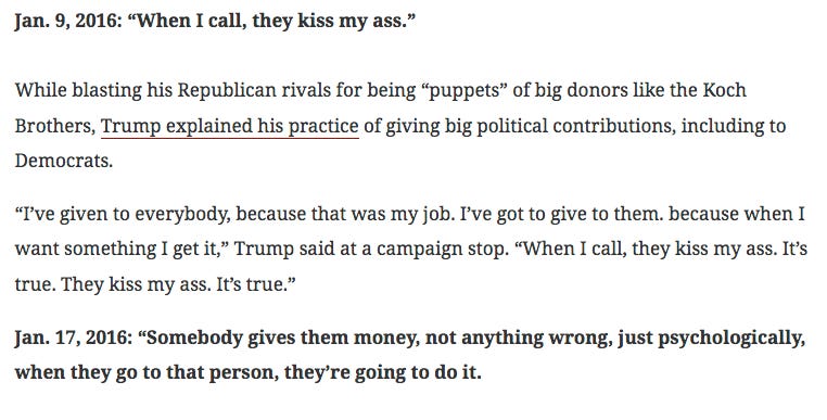 It leads us to the sad reality of almost unlimited money in our politics and the ability of billionaires to buy almost anything or anyone politically influential thanks to decades of GOP efforts of arguing “money is speech,” because narcissist millionaires and billionaires paid them to do it.