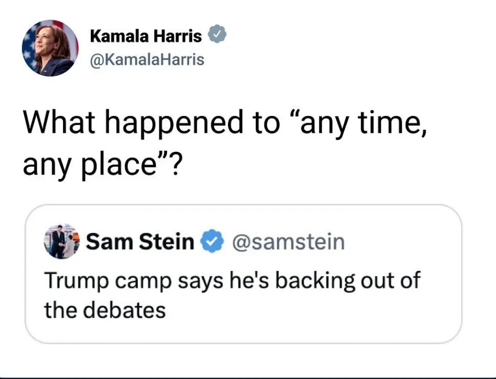 Subconsciously, he is insanely jealous of Kamala’s popularity and star power. Of course consciously, he was certain he was helping himself with his toxic bs.