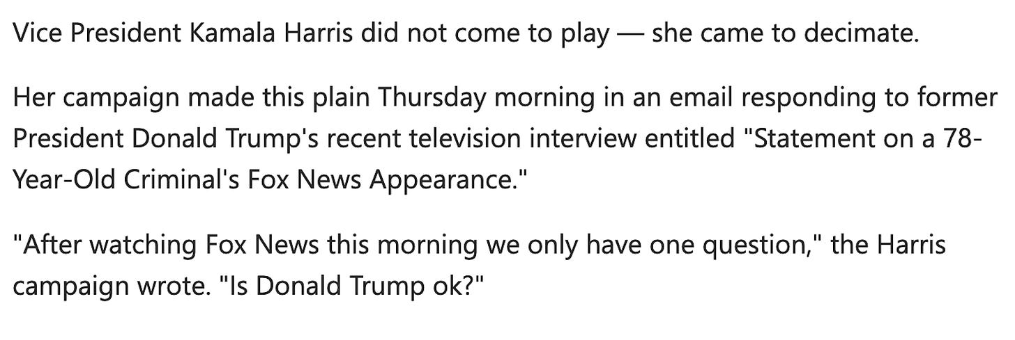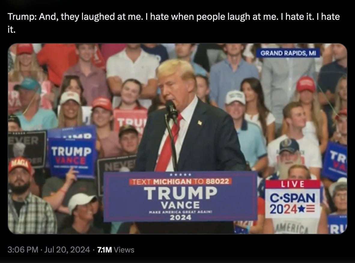 I also highly suspect that trump melted down in front of the National Association of Black Journalists, in no small part due to a strong black woman named Kamala causing him to be ignored by the media. It certainly crushes his fragile feelings that she is dominating every news cycle.