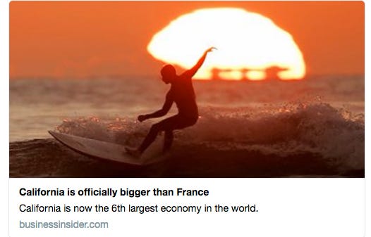When you hear maga try to denigrate any of her jobs, just remind them that California is the largest state in America with roughly 40 million people. If we were a country, we usually have the fifth or sixth largest economy in the world, because we have so many strong and diverse economic engines, such as entertainment, tech, energy, tourism and farming, to name but a few. Not bad capitalism for a place trump, maga and gop call a “socialist hellhole.”
