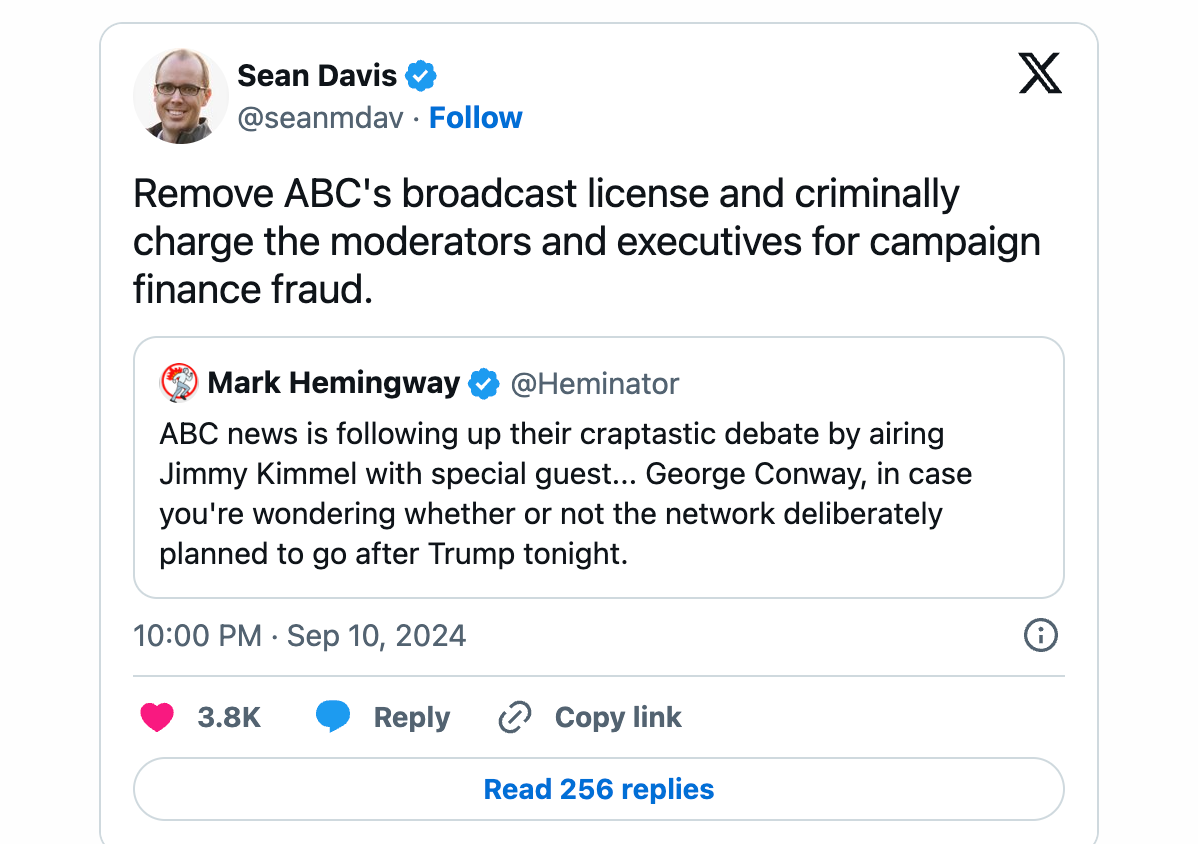 Also, this fascist tool at the Federalist says ABC should lose its license and many should go to prison. It is both telling and disgusting how once “serious” “conservative” publications are openly anti-American in shilling for trump.