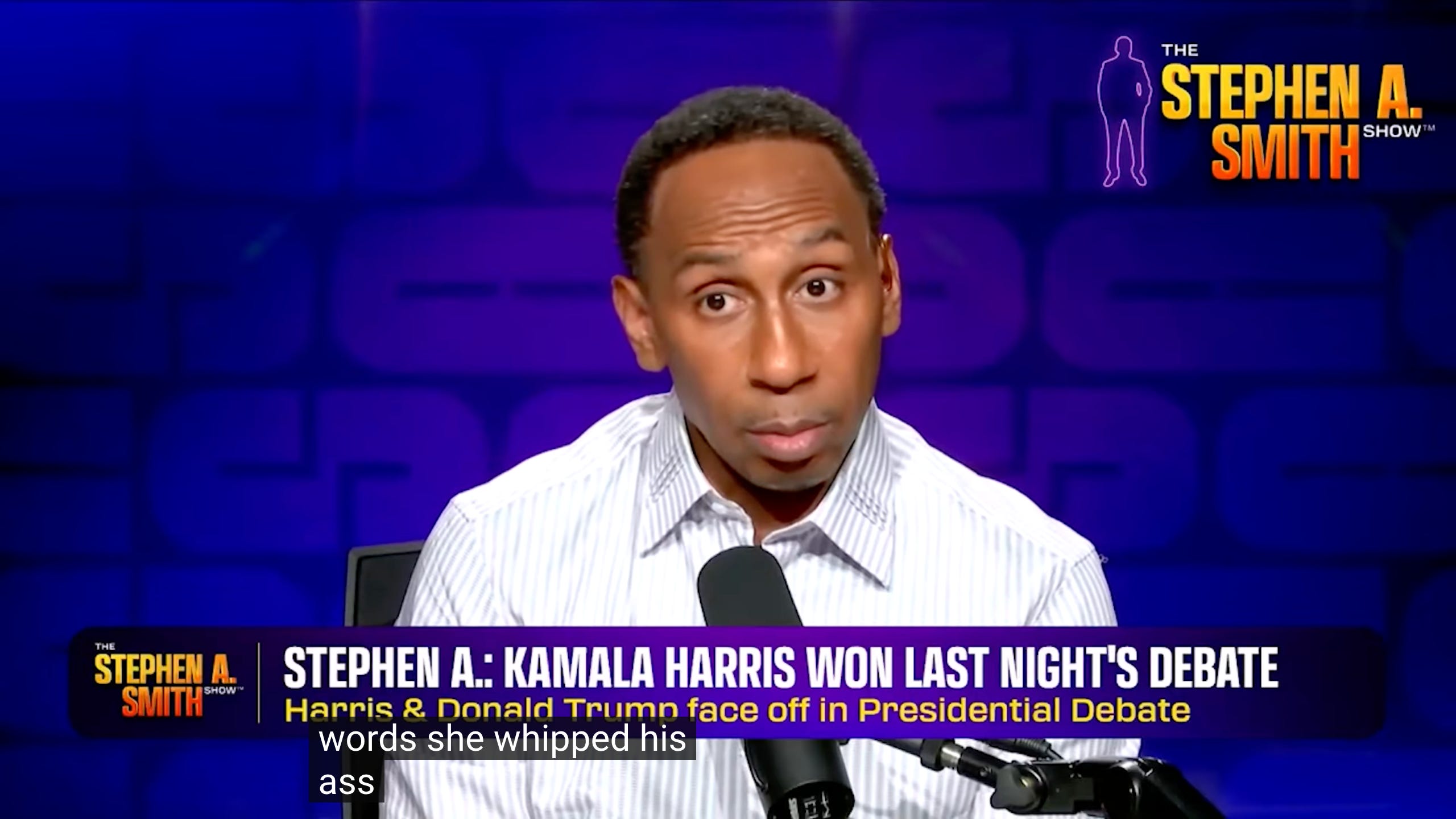 Additionally, her facial reactions to his insane ramblings have been reviewed as close to pitch perfect. In hindsight, she was reacting to his nonsense in a way the large majority of the commentators and audience agreed with. i.e. Her facial expressions well represented how most responded to his lunacy and meltdowns.